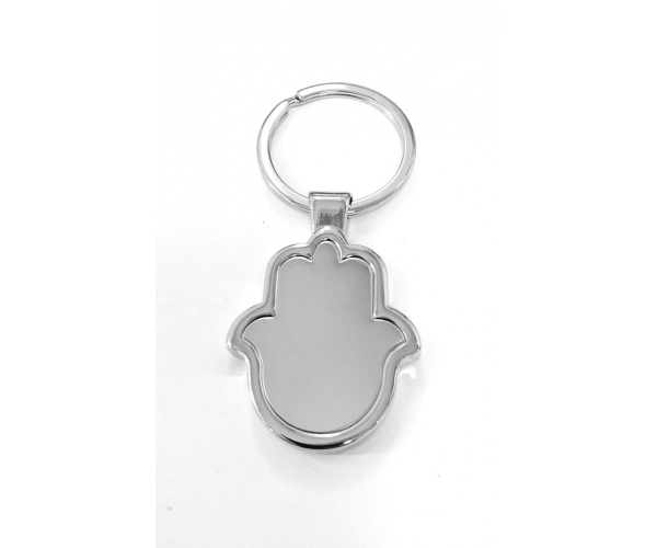 מחזיק מפתחות מתכתי בצורת חמסה.
